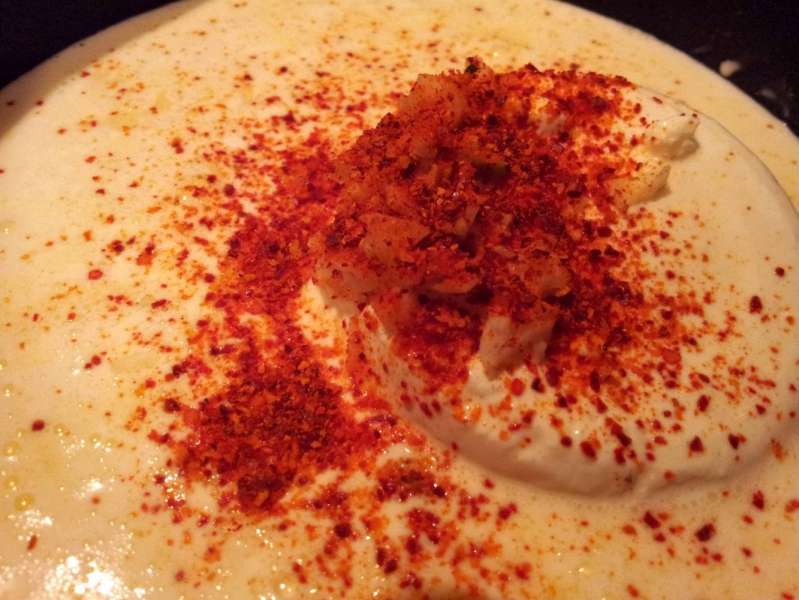 Die Crème double in einen Topf geben und zusammen mit der kleingehackten Knoblauchzehe erhitzen, ohne dass das Ganze kocht. Harissa (Gewürze) dazugeben. Vom Herd nehmen und 20min ziehen lassen.