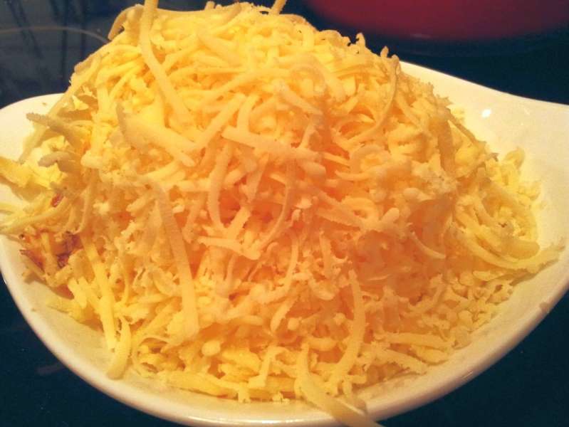 Inzwischen den Ofen vorheizen auf 200°C, das Lammfleisch durch den Fleischwolf drehen, den Käse reiben, den Kürbis oben aufschneiden, dass ein Deckel entsteht und ihn aushöhlen (Kerne und Fäden entfernen).