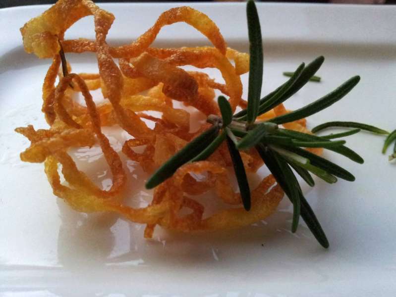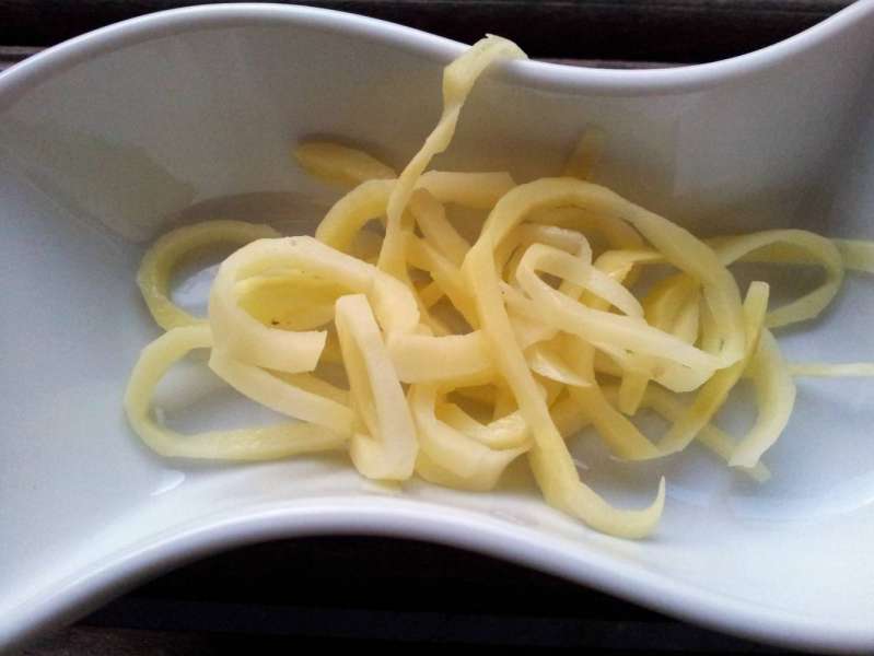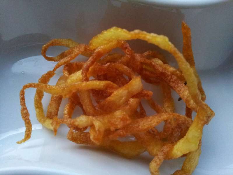 ![]() ![]() Foto(s): Ulrich Wolf Hinweise zur Sicherheit: ACHTUNG! Es empfiehlt sich die Verwendung einer Stielkasserolle, weil die einen langen Griff hat. Diese zum Frittieren weniger als zur Hälfte mit Öl füllen. Einen tiefen Teller bereitstellen, falls das Öl doch überläuft. Warum? Die Kartoffel hat viel Wasser gespeichert und der Span eine große Oberfläche. In Sekundenschnelle! wird beim Eintauchen das Wasser der Kartoffel verdampfen, der Dampf breitet sich im Öl aus, das voraussichtlich stark aufwallen und sein Volumen deutlich vergrößern wird. Es braucht dann viel Platz im Topf, sonst kommt´s halt raus. Wenn´s passiert, Ruhe bewahren, man hat ja schließlich einen langen Stiel am Topf, mit dem man gefahrlos die Kasserolle in den Teller setzen kann. Verweise zum Lexikon: frittieren |