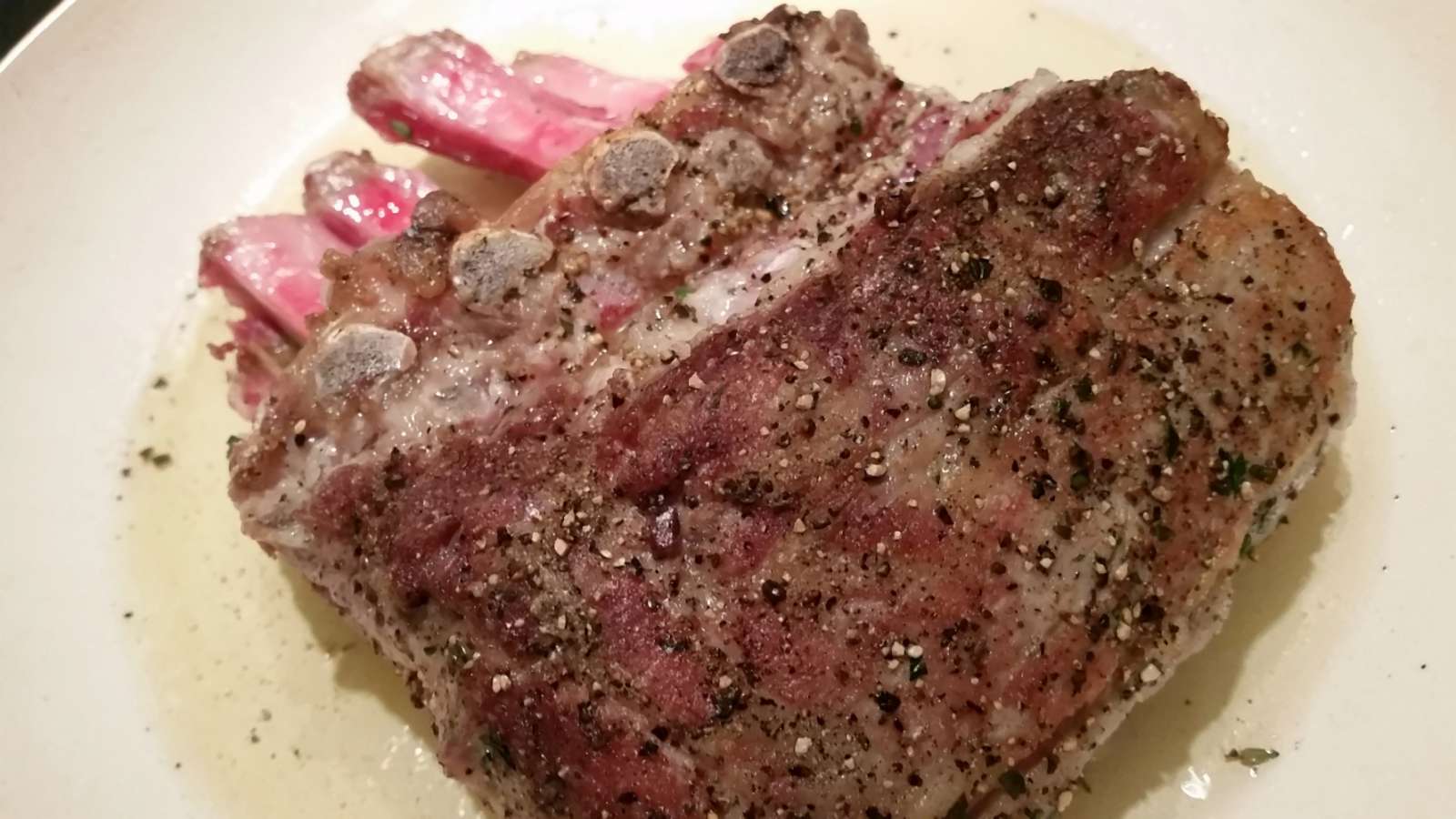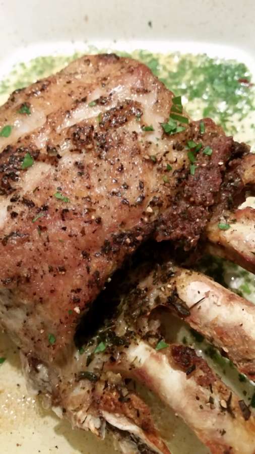 Durch das Garen am Stück und am Knochen bekommt das Fleisch außen eine herrliche Kruste und bleibt innen wunderbar saftig.