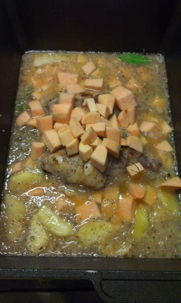 • Süßkartoffel-Kaserolle mit Kanichenkeulen