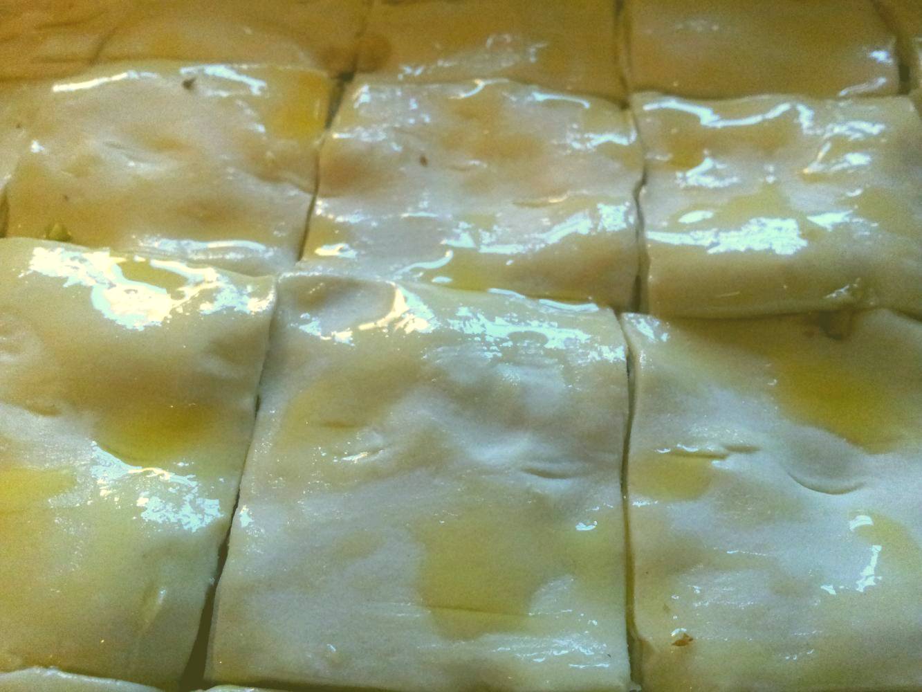 Rauten oder Quadrate schneiden, den Rest Butter obenauf streichen, 10min ruhen lassen.