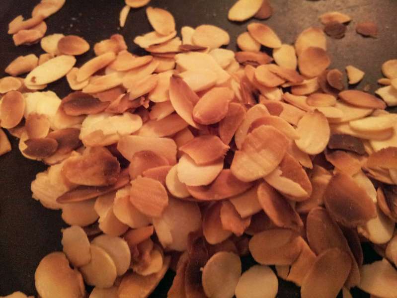Mandeln in der Pfanne ohne Fett anrösten.