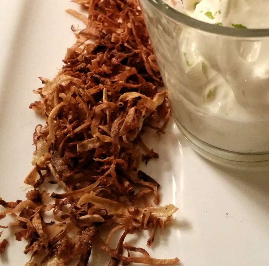 Schwarzwälder Schinken in kleine Würfel oder dünne Streifen schneiden, in Butterschmalz kross anbraten.