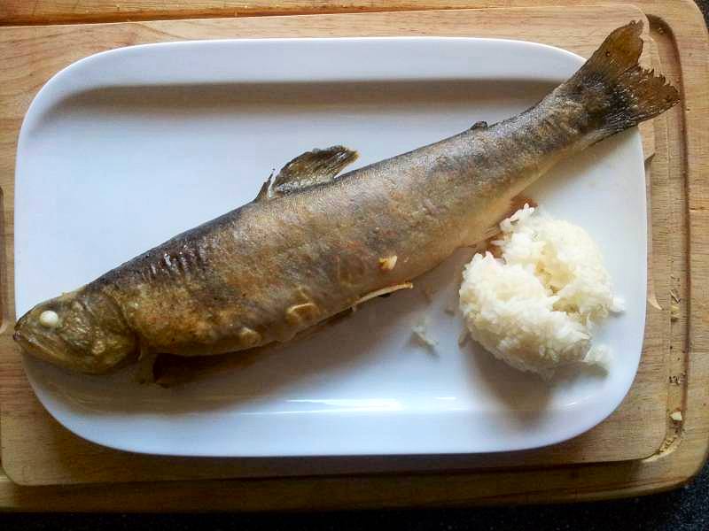 FischsuppeLachsröllchen auf Pfeffer-Sahne